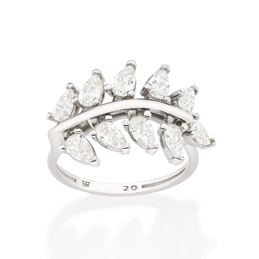 Anel Folha Cravejado Por 10 Zircônias Gotas De 3X5 Mm (Joia Licen Coleção Ana Hickmann)