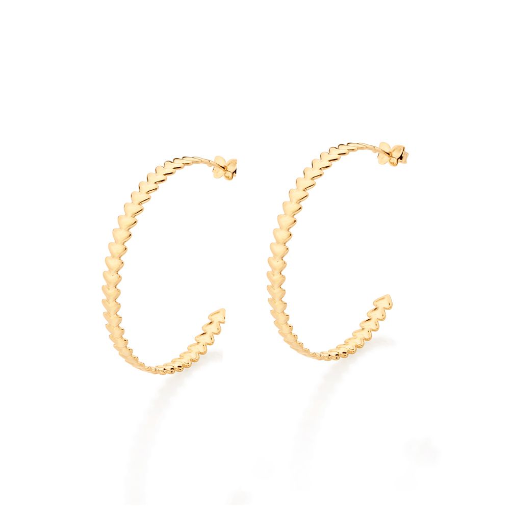 Brinco Rommanel Meia Argola Com Aro Em Formato De Corações Med 4,3 Cm De Diâmetro - 526930
