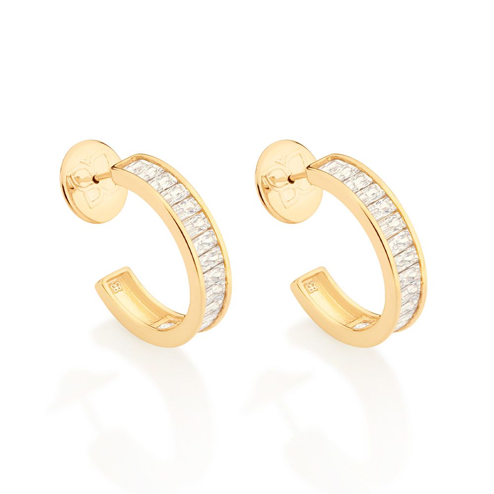 Brinco Rommanel Meia Argola Cravejado Por 34 Zircônias Baguete De 2X4 Mm Med 2,4 Cm De Diâmetro - 526750