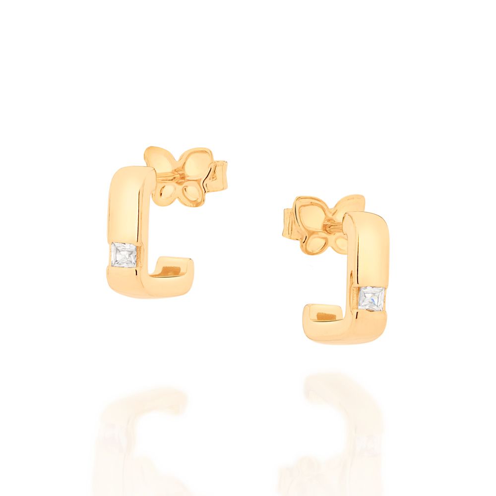 Brinco Rommanel Meia Argola Quadrada, Composta Por 2 Zircônias Carrês De 2X2 Mm (Par)Med 1,0 Cm X 1,0 Cm(Joia Licenciada - 526695
