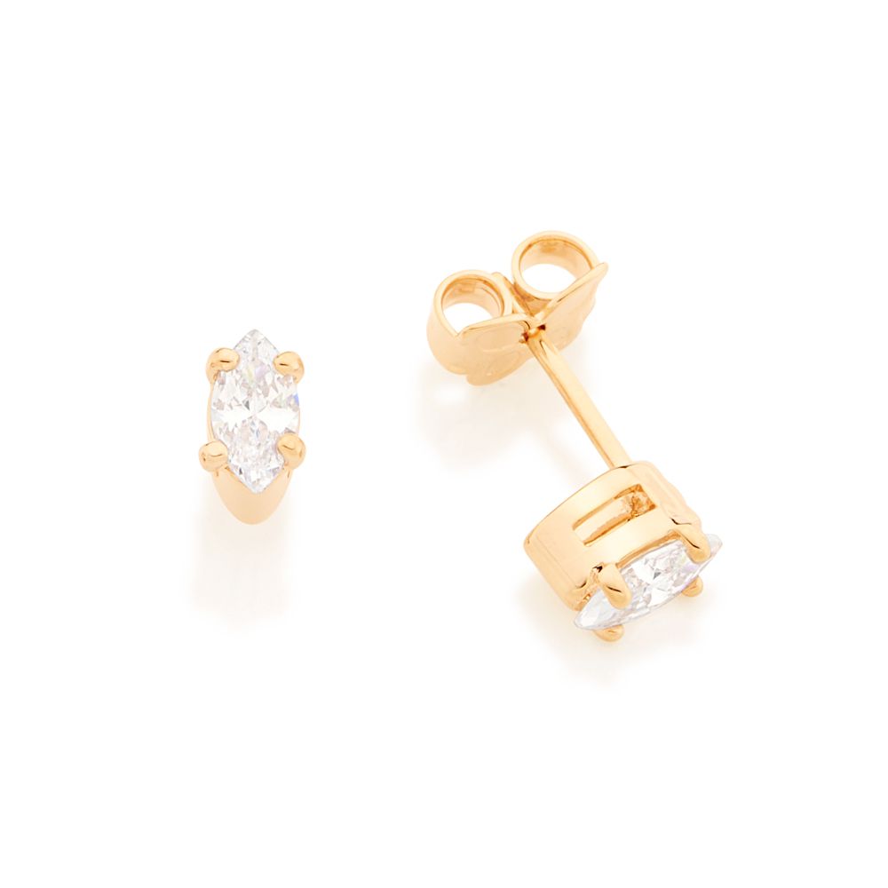 Brinco Rommanel Solitário Formado Por 2 Zircônias Navete De 3 X 6 Mm (Par) Med 0,6 Cm X 0,4 Cm