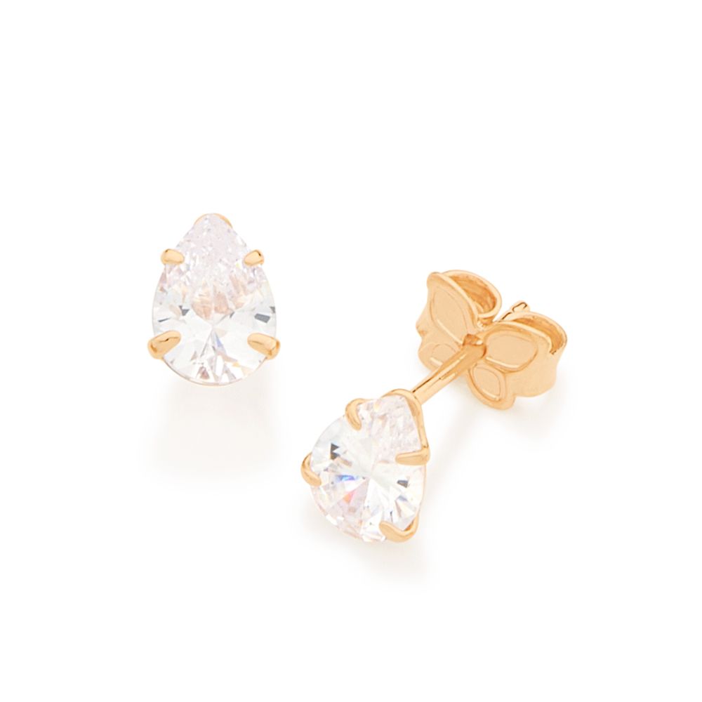Brinco Rommanel Solitário Formado Por 2 Zircônias No Formato Gota De 5X7Mm (Par) Med 0,7 X 0,5 Cm - 526170