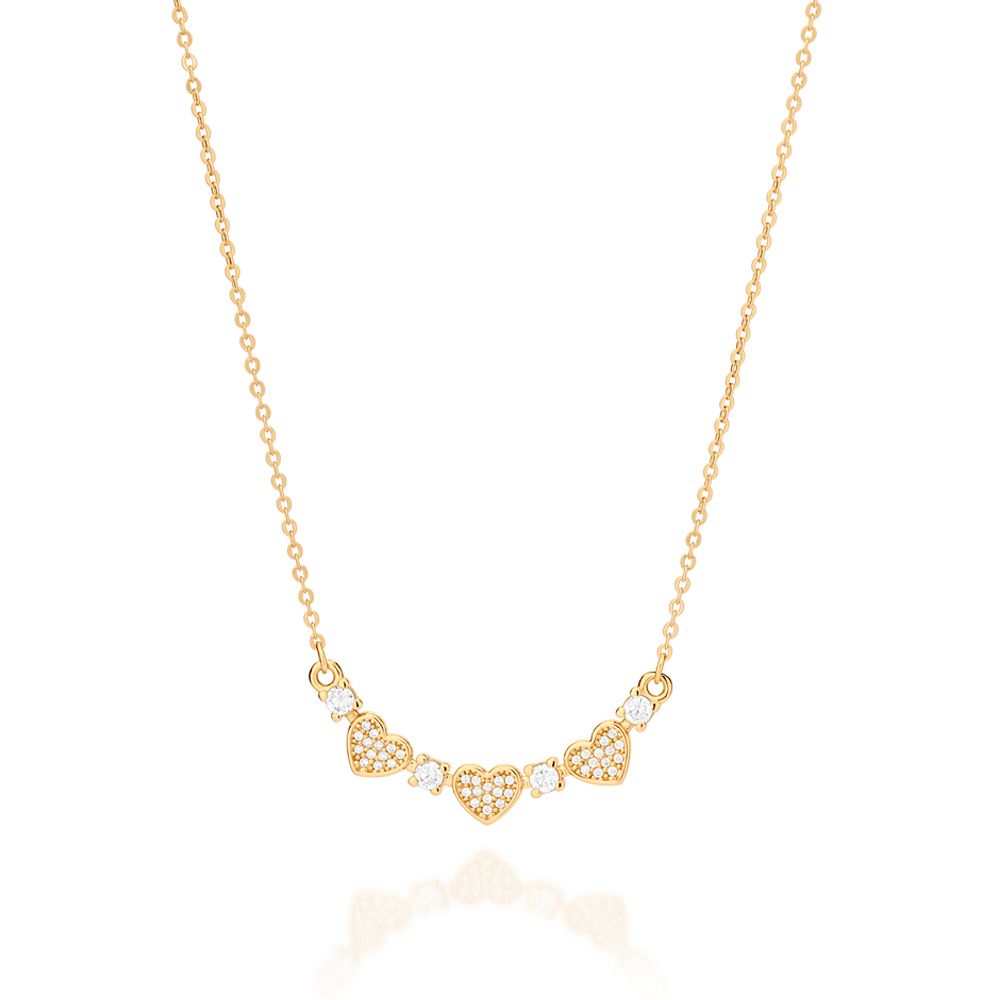 Gargantilha Formada Por Corrente De Elo Cadeado Fio 0,35 Mm,Composta Por Pingente 3 Corações Cravejados Por 39 Zircônias
