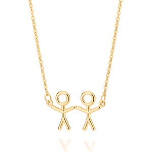 Gargantilha Rommanel Formada Por Corrente De Elos Cadeado Laminado Fio 0,35 Mm, Composta Por Pingente Com Dois Meninos P