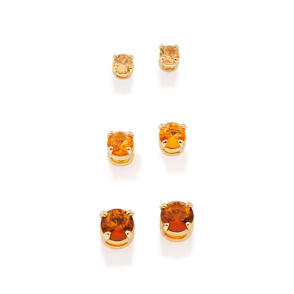 Kit Brinco Formado Por Um Par Com 2 Cristais De 5,00 Mm , Um Par Com 2 Cristais De 4,00 Mm E Um Par Com 2 Cristais De 3